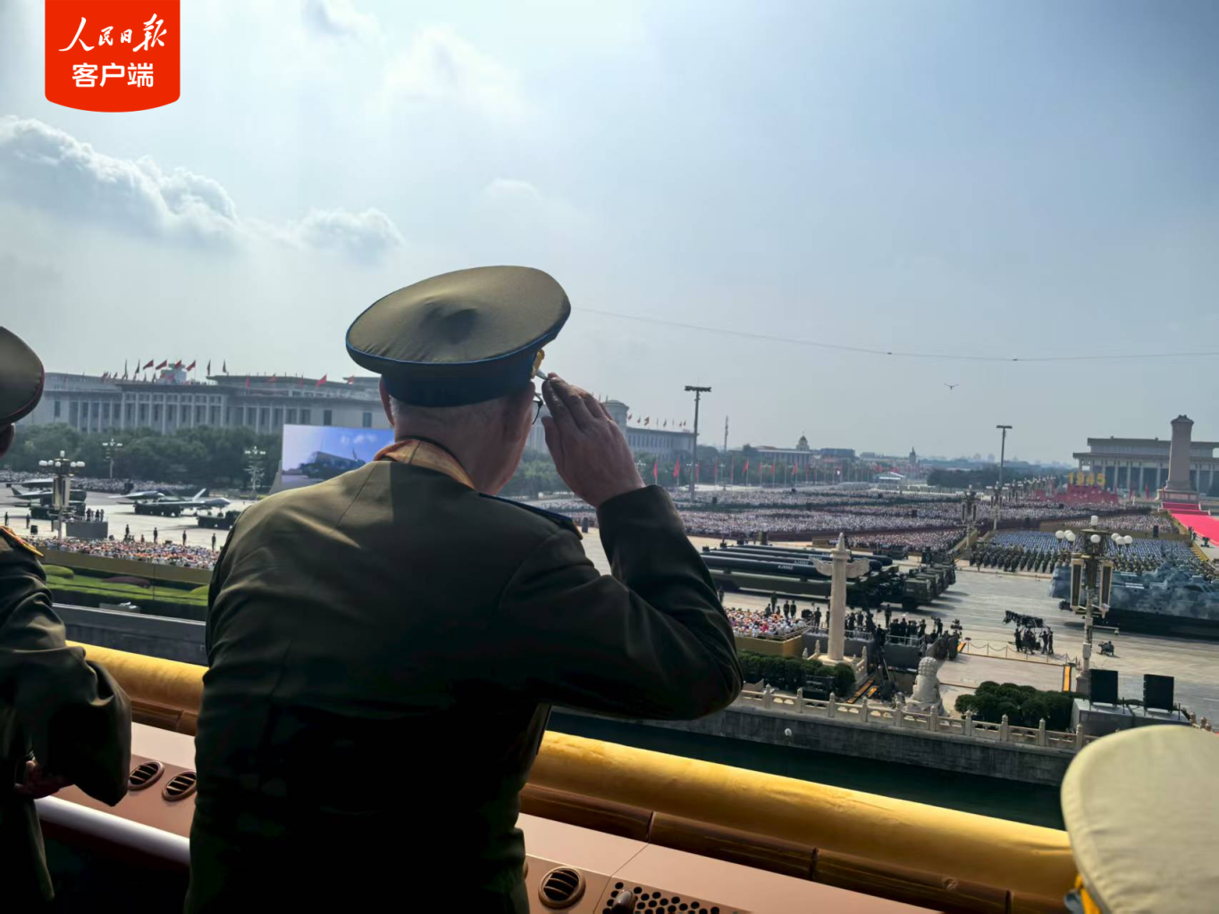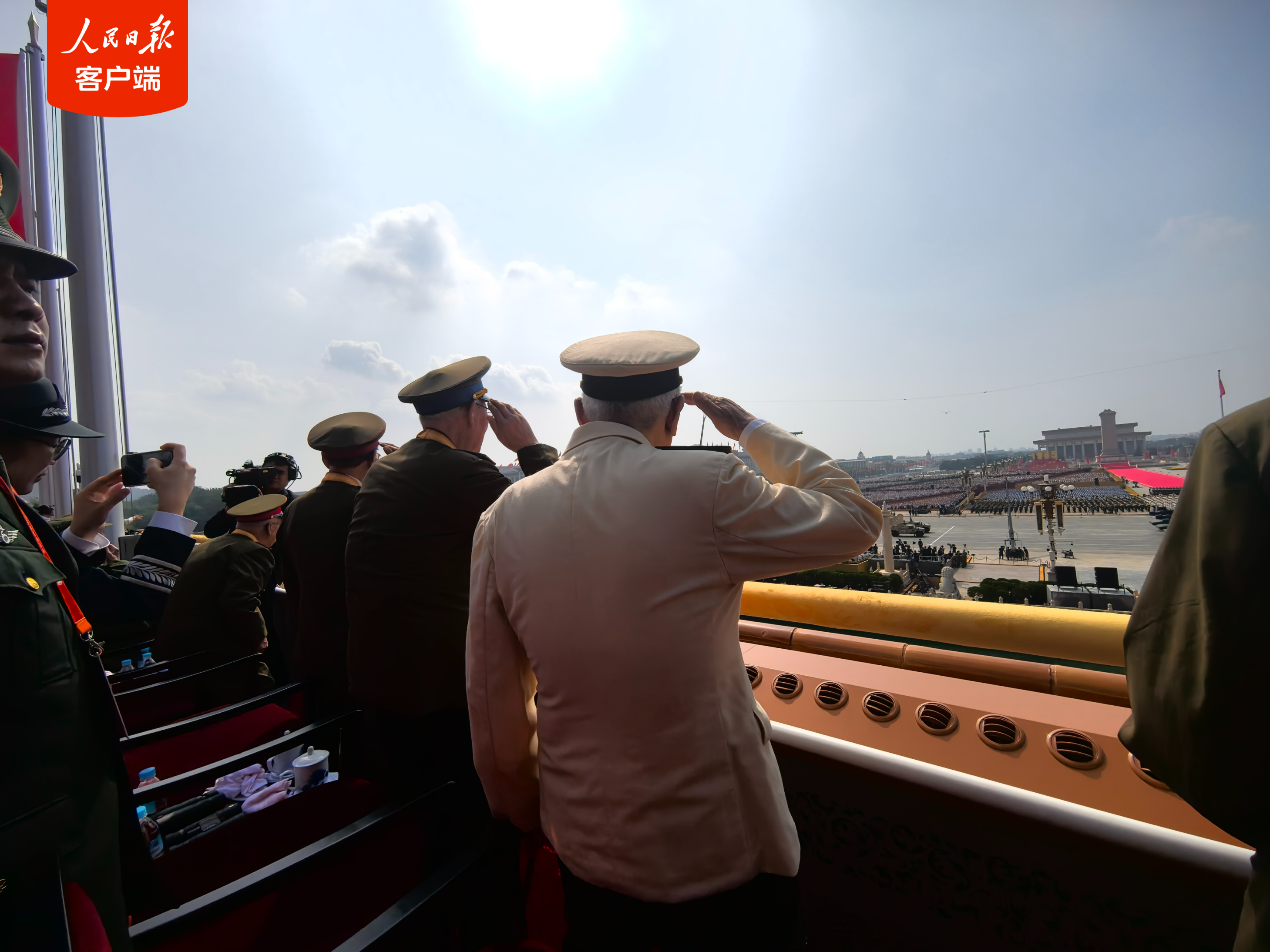 阅兵式期间,天安门城楼上,参加过抗战的老战士老同志,颤颤巍巍地起身敬军礼。这一幕,感动!网友:这是您浴血守卫的山河,致敬!