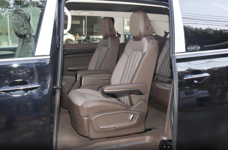 内饰部分,和主流的合资燃油MPV风格相差不多,但细节更考究,多采用深色饰板、钢琴烤漆等高阶视觉元素进行质感烘托,中控屏尺寸适中(高配升级12英寸,中低配10英寸),像导航、多媒体功能一应俱全,只是低配车机少了第三方车机软件的适配,可玩性局限较多,想要更好的座舱智能化体验,需选择高配车机。