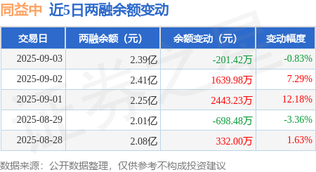 本站消息,9月3日,同益中(688722)融资买入1705.89万元,融资偿还1907.31万元,融资净卖出201.42万元,融资余额2.39亿元,近20个交易日中有11个交易日出现融资净买入。